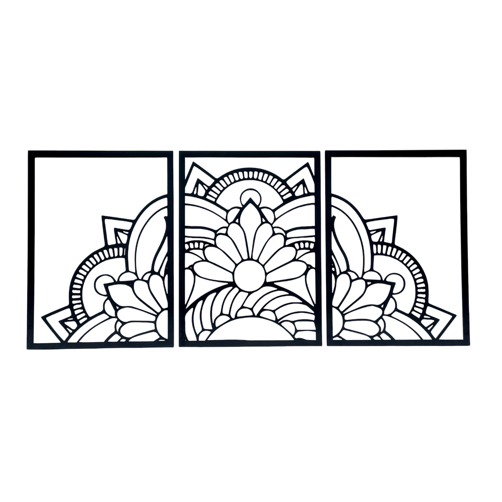 Finished in a deep, matte black, this triptych wall art set exudes contemporary sophistication. The black color highlights the intricate detailing of the design while offering a bold contrast against light-colored walls. It also blends effortlessly with darker interiors, making it a versatile choice for various decor styles, including: